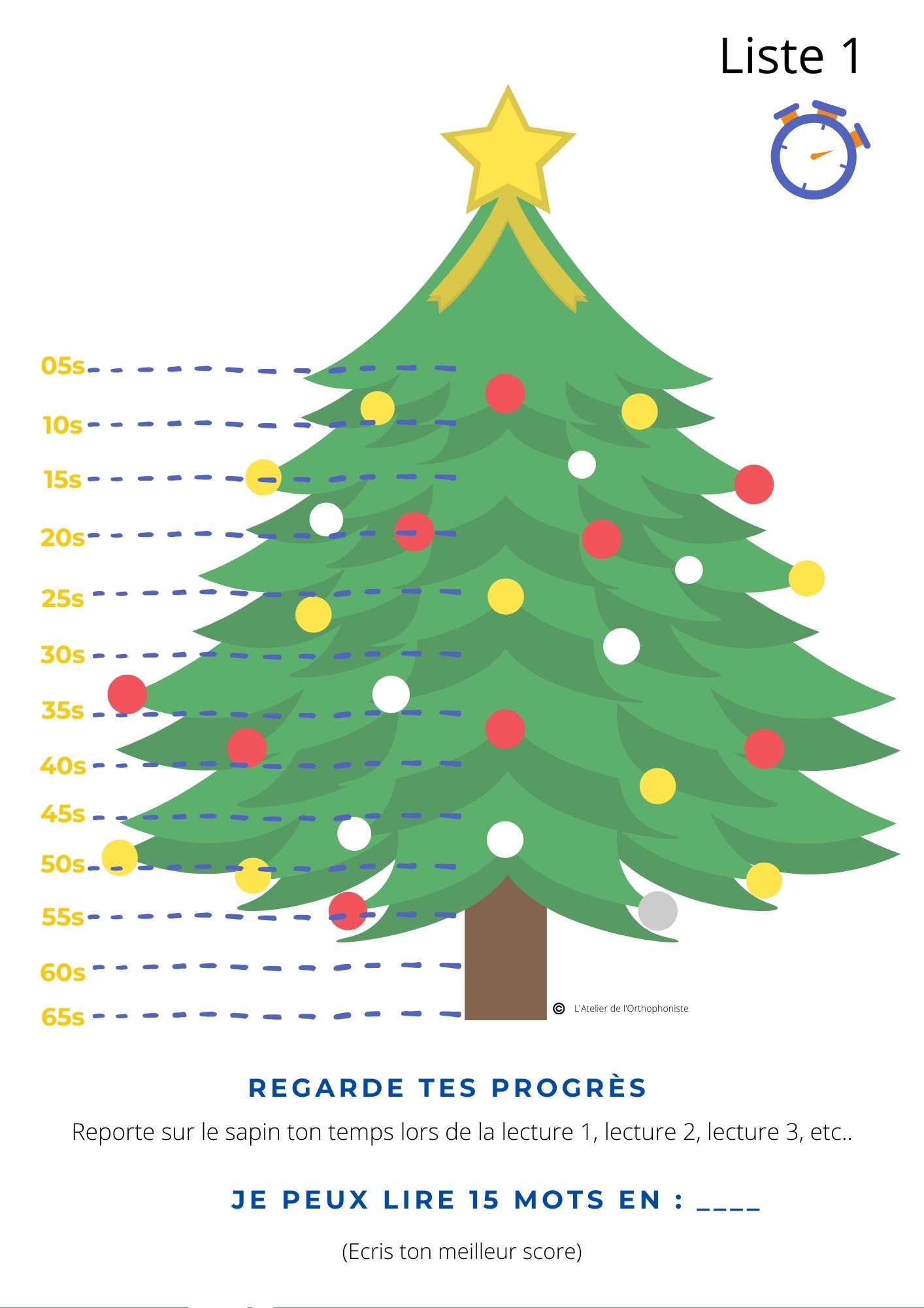 - Liste 4 : petite phrase > je décore le sapin de Noël