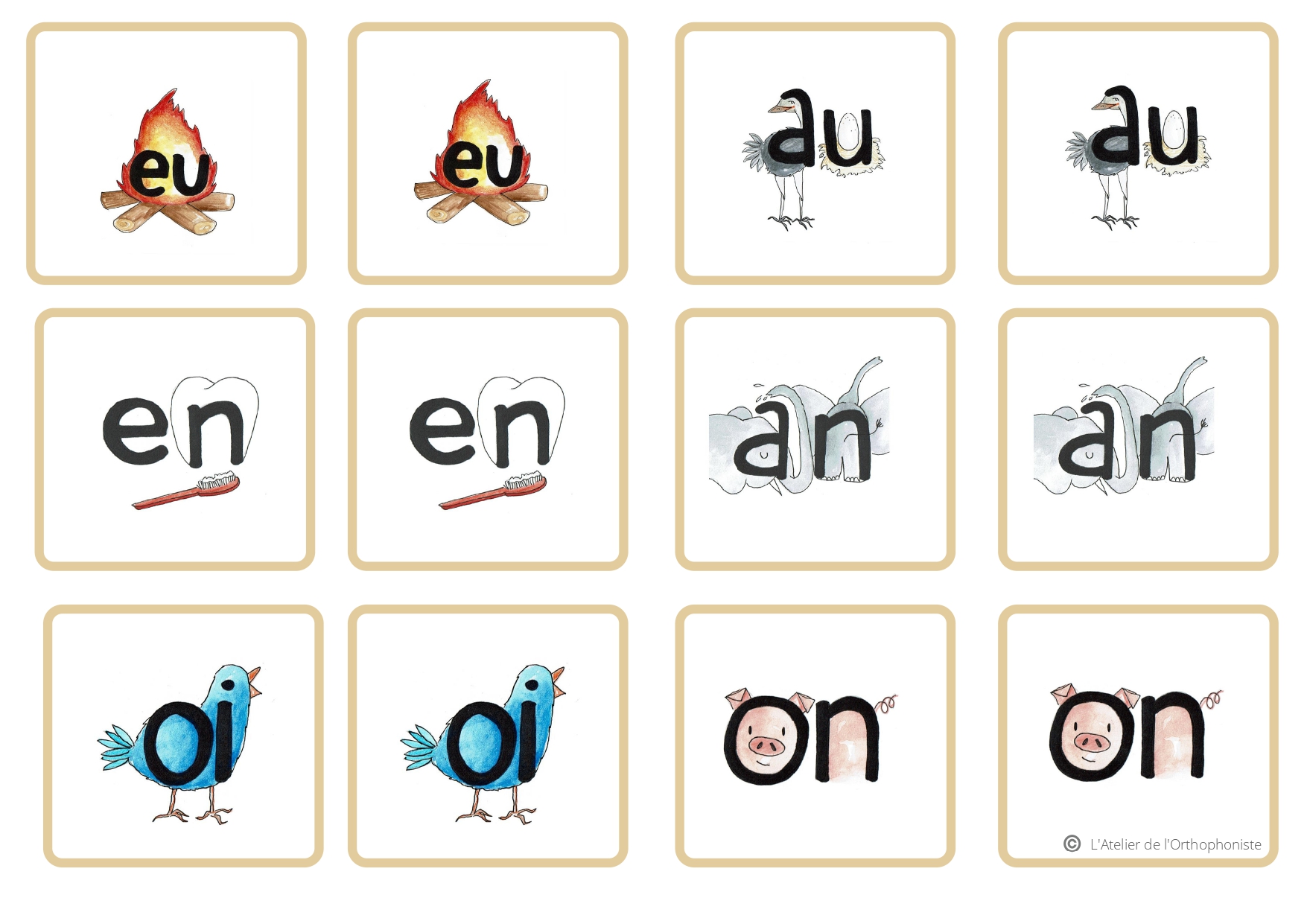Digrammes proposés : ou, on, oi, in, eu, au, en, an, ei, ai