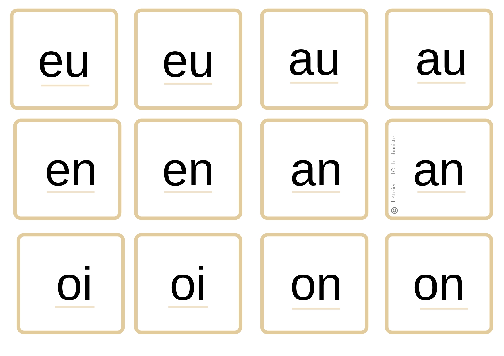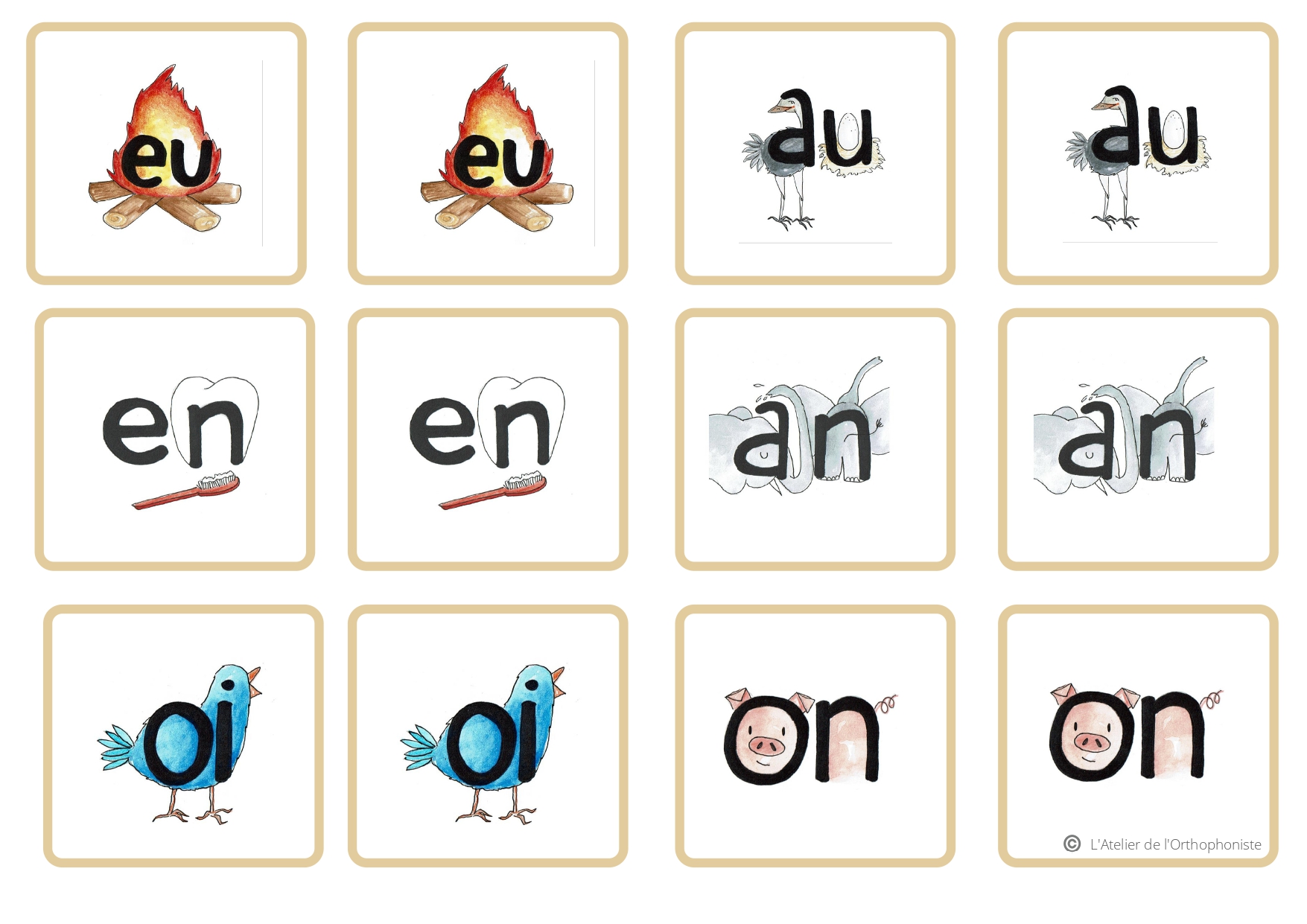 Digrammes proposés : ou, oi, on, eu, au, en, an, ei, ai, in
