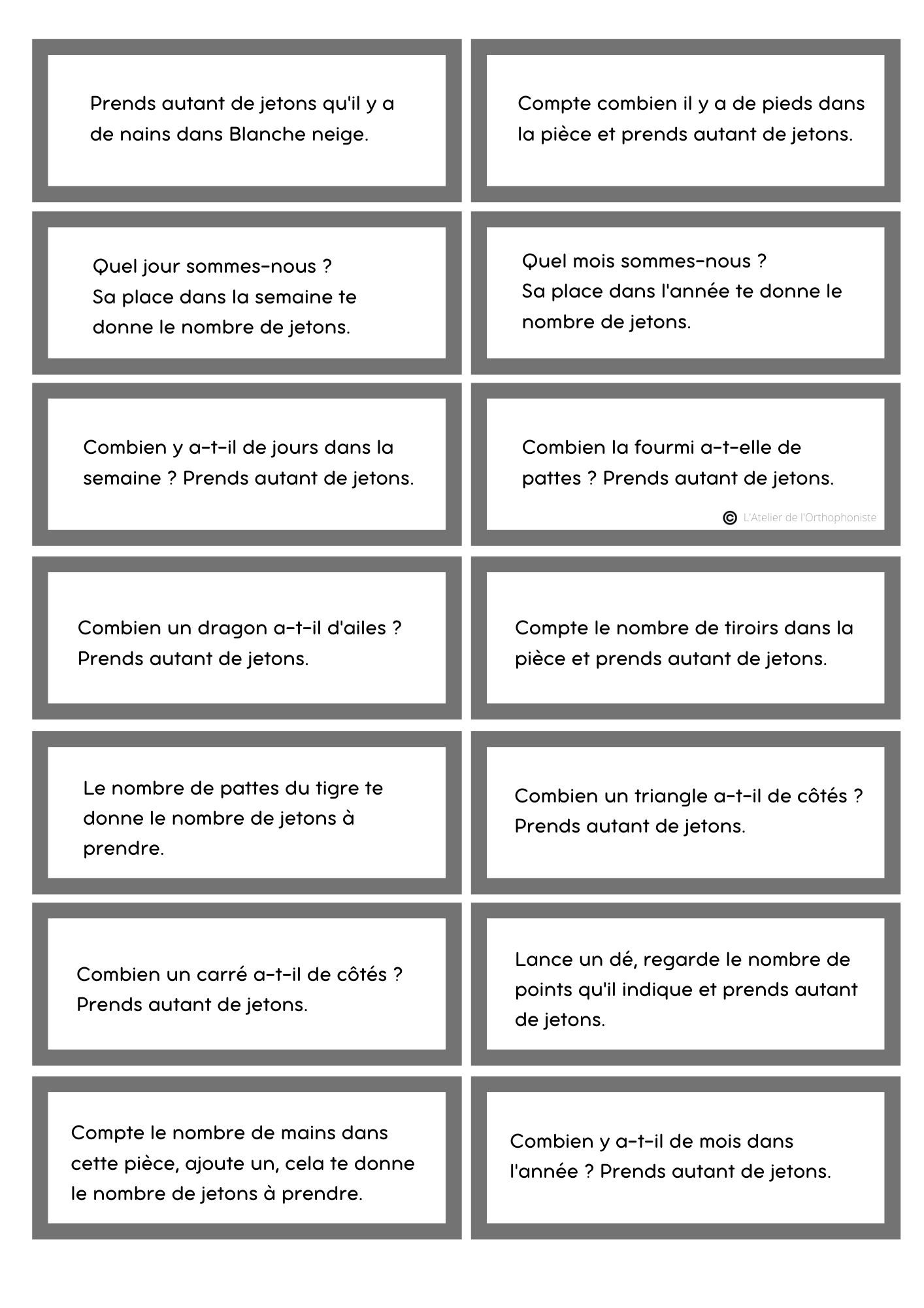 Exemple de cartes à collectionner pour la version maths et lecture